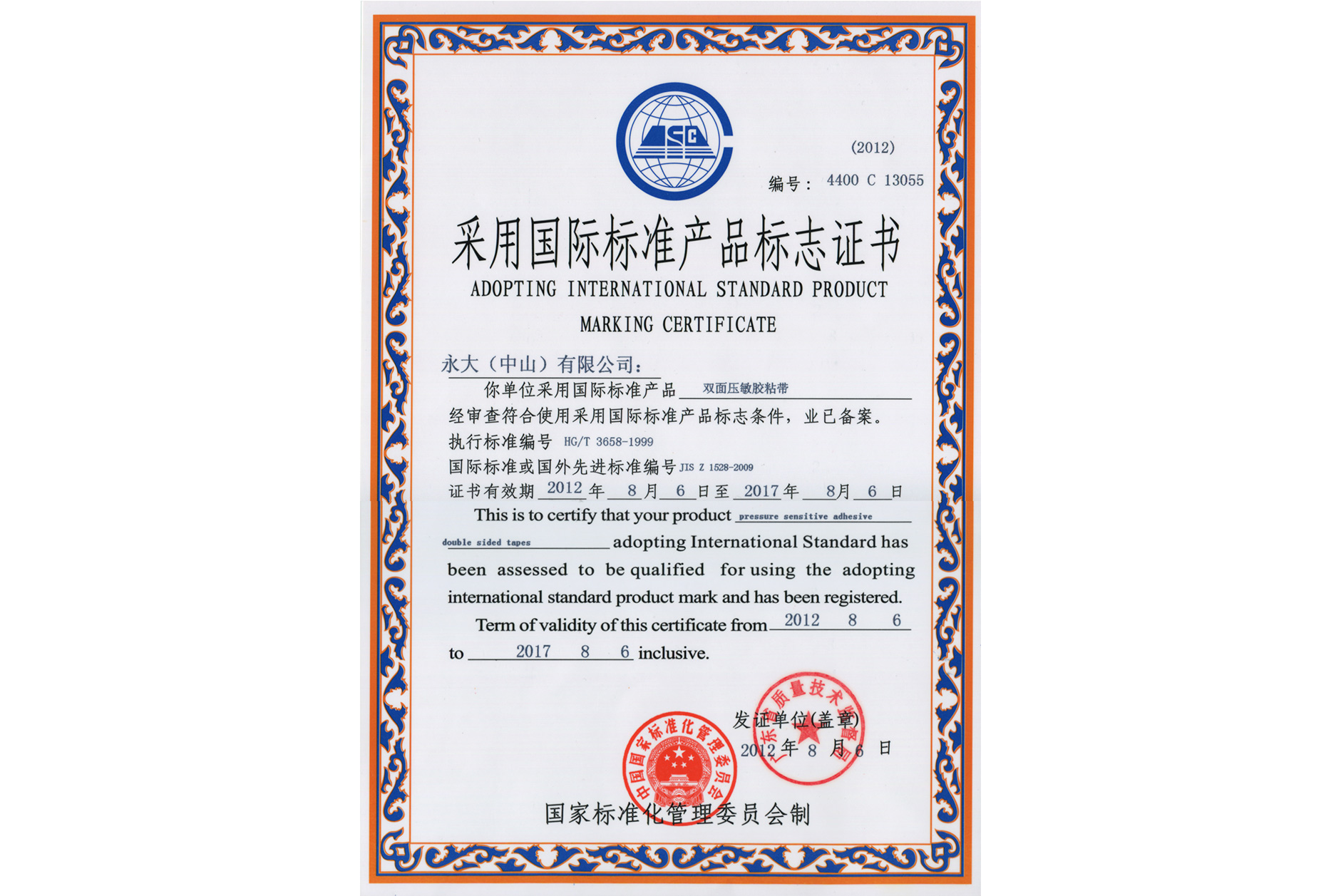 *公司再次當(dāng)選為“中國膠粘劑標(biāo)準(zhǔn)化技術(shù)委員會(huì)壓敏膠制品分技術(shù)委員會(huì)副主任委員單位”